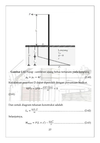 Gambar 2.12 Turap cantilever ujung bebas tertanam pada lempung