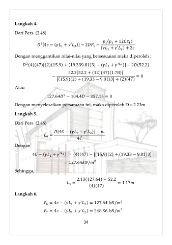 Dengan menyelesaikan persamaan ini, maka diperoleh D = 2.23m.