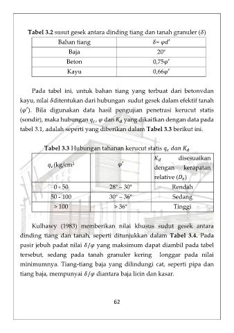 Tabel 3.2 susut gesek antara dinding tiang dan tanah granuler (  )