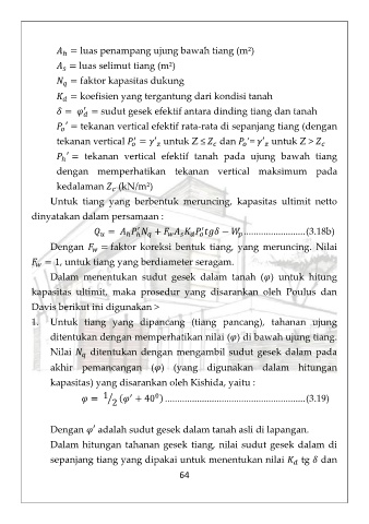 Dengan     = faktor  koreksi  bentuk  tiang,  yang  meruncing.  Nilai