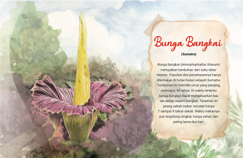 Bunga bangkai (Amorphophallus titanum) merupakan tumbuhan dari suku talas- talasan. Populasi dan persebarannya hanya ditemukan di hutan-hutan wilayah Sumatra. Tumbuhan ini memiliki umur yang panjang, mencapai 40 tahun. Di waktu tertentu bunga bangkai dapat mengeluarkan bau tak sedap seperti bangkai. Tanaman ini jarang sekali mekar, tercatat hanya