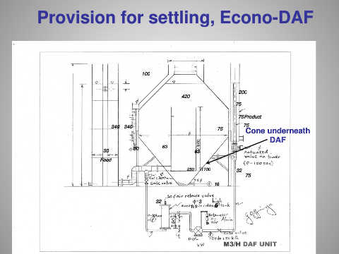Provision for settling, Econo-DAF 100 200 420 75 1 700 75Product 340 340 75 75 Cone underneath 110 DAF 30 90 63 63 Feed 250 1100 32 75 10 32 3 1.1 6