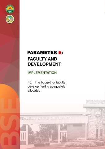 PARAMETER E: FACULTY AND DEVELOPMENT IMPLEMENTATION I.5. The budget for faculty development is adequately allocated