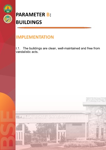 PARAMETER B: BUILDINGS IMPLEMENTATION I.1. The buildings are clean, well-maintained and free from vandalistic acts.