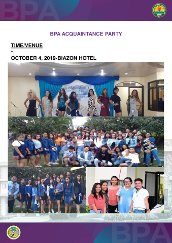 BPA ACQUAINTANCE PARTY TIME/VENUE • OCTOBER 4, 2019-BIAZON HOTEL
