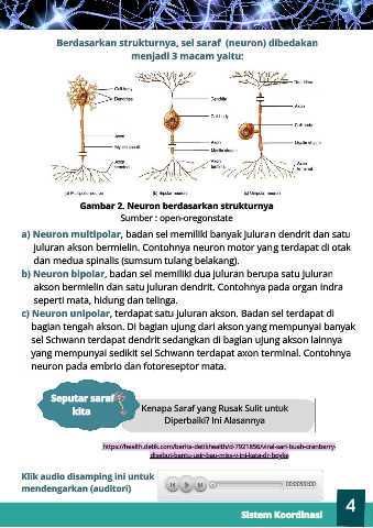 Berdasarkan strukturnya, sel saraf (neuron) dibedakan