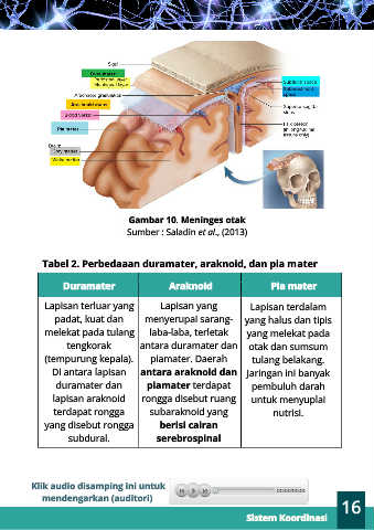 Tabel 2. Perbedaaan duramater, araknoid, dan pia mater