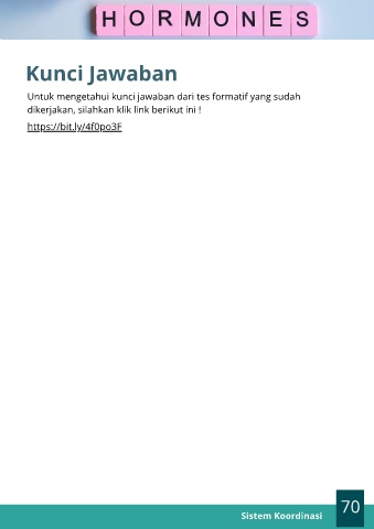 Kunci Jawaban Untuk mengetahui kunci jawaban dari tes formatif yang sudah dikerjakan, silahkan klik link berikut ini ! https://bit.ly/4f0po3F 79 70 Sistem Koordinasi Sistem Koordinasi 36