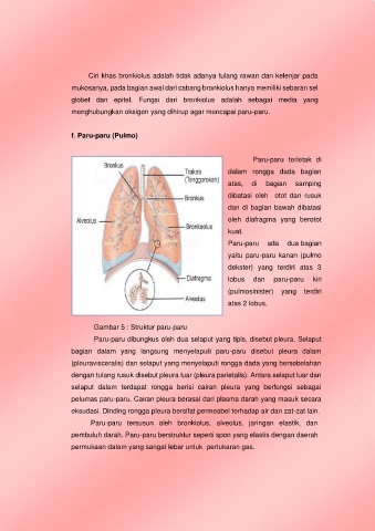 pembuluh darah. Paru-paru berstruktur seperti spon yang elastis dengan daerah