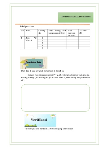 Dengan menggunakan rumus P = ρ.g.h, hitunglah tekanan pada masing-