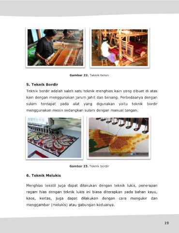 Menghias tekstil juga dapat dilakukan dengan teknik lukis, penerapan