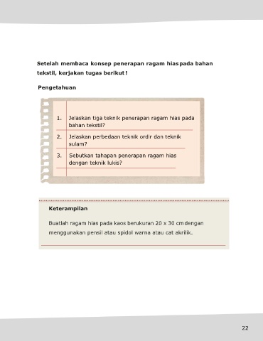 1. Jelaskan tiga teknik penerapan ragam hias pada