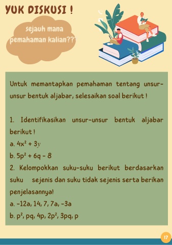 1. Identifikasikan unsur-unsur bentuk aljabar