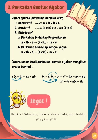 Secara umum hasil perkalian bentuk aljabar mengikuti