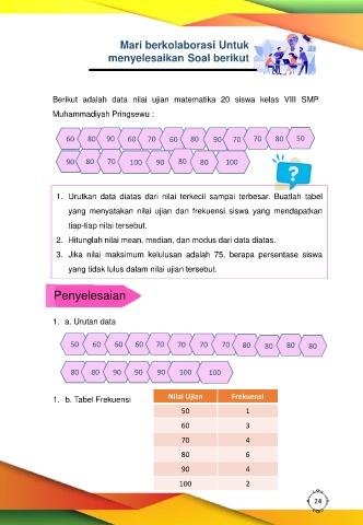 Berikut  adalah  data  nilai  ujian  matematika  20  siswa  kelas  VIII  SMP
