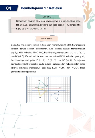dan M’ (-4, 5). Kemudian kita akan mencerminkan K’L’M’ terhadap garis y =1,