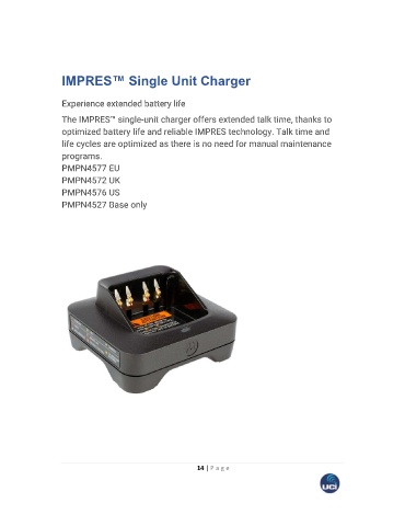 The IMPRES™ single-unit charger offers extended talk time, thanks to