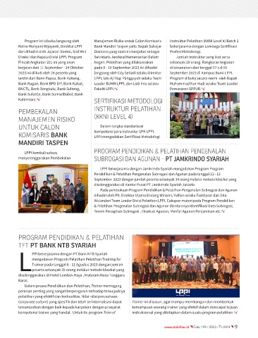 Retno Wahyuni Wijayanti, Direktur LPPI Bank Mandiri Taspen yaitu Bapak Suhajar bekerjasama dengan Lembaga Sertifikasi