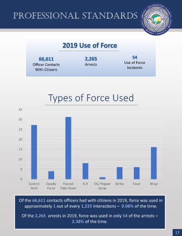 Of the 66,611 contacts officers had with citizens in 2019, force was used in