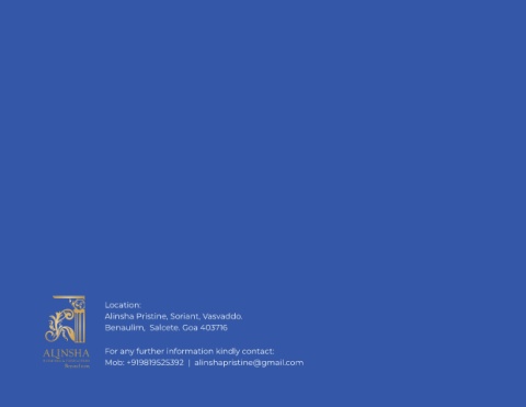 Location: Alinsha Pristine, Soriant, Vasvaddo. Benaulim, Salcete. Goa 403716 For any further information kindly contact: Mob: +919819525392 | alinshapristine@gmail.com