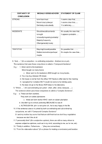 CERTAINTY OF MODALS VERBS/ADVERB STATEMENT OF CLAIM