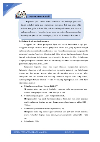 volume paru-paru berkisar antara 5 – 6 liter. Udara yang dipernapaskan oleh tubuh dapat
