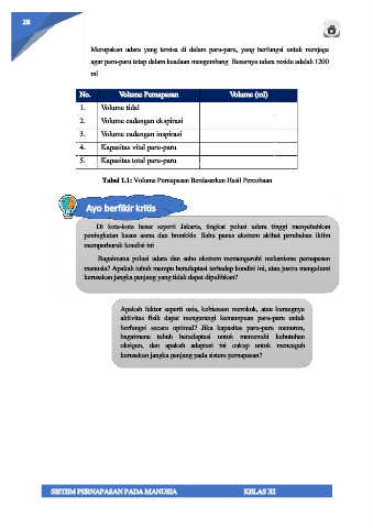 Tabel 1.1: Volume Pernapasan Berdasarkan Hasil Percobaan