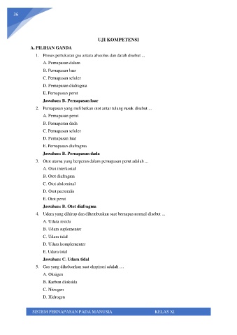 5. Gas yang dikeluarkan saat ekspirasi adalah ....