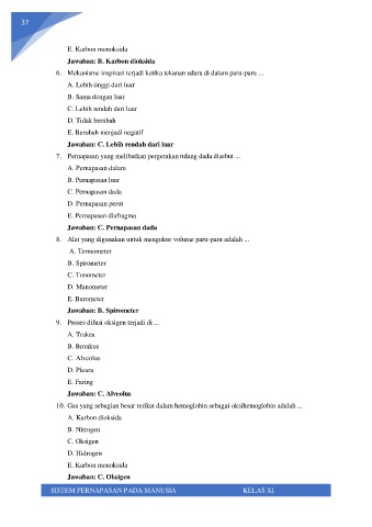 10. Gas yang sebagian besar terikat dalam hemoglobin sebagai oksihemoglobin adalah ...