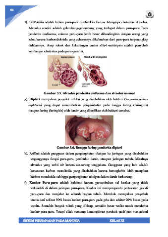f).  Emfisema  adalah kelain paru-paru disebabkan karena  hilangnya  elastisitas alveolus.