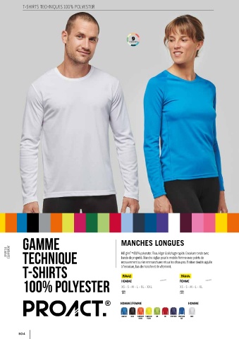SPORTS & ÉQUIPEMENT TECHNIQUE 140 g/m² • 100% polyester. Tissu léger à séchage rapide. Encolure ronde avec