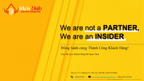 We are not a PARTNER, We are an INSIDER Đồng hành cùng Thành Công Khách Hàng! Cám Ơn Quý Khách Hàng Đã Quan Tâm! Địa chỉ: số 17, đường số 9, Linh Tây, Thủ Đức, tp.Hồ Chí Minh 0921.079.822 | info.ideahubmarketing@gmail.com | Zalo: 0921.079.822