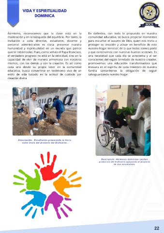cada uno desde su propia labor en la comunidad instaura en el espíritu de cada miembro de nuestra