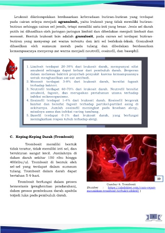 5. Basofil terdapat 0-1% dari leukosit darah, yang berfungsi