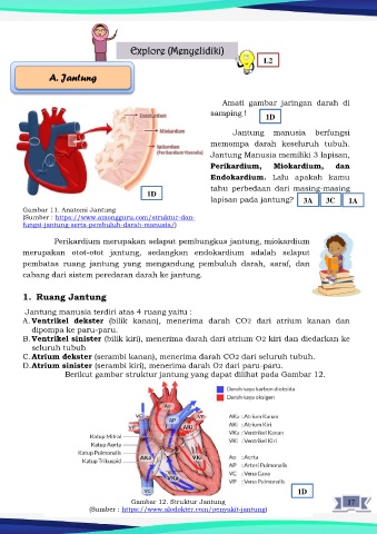Jantung manusia terdiri atas 4 ruang yaitu :