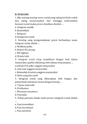 1. Jika masing-masing unsur sosial yang saling berbeda sudah