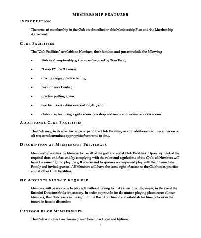 The terms of membership in the Club are described in this Membership Plan and the Membership