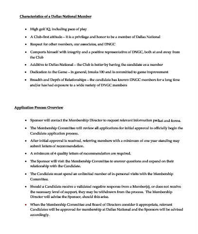 Candidates will be approved for membership at Dallas National and the Sponsors will be advised