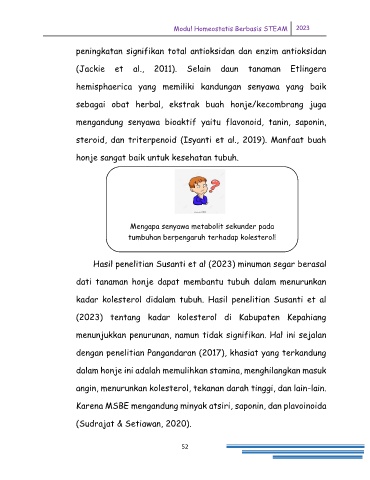 kadar kolesterol didalam tubuh. Hasil penelitian Susanti et al