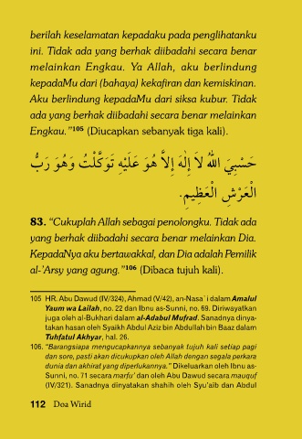 106. “Barangsiapa mengucapkannya sebanyak tujuh kali setiap pagi
