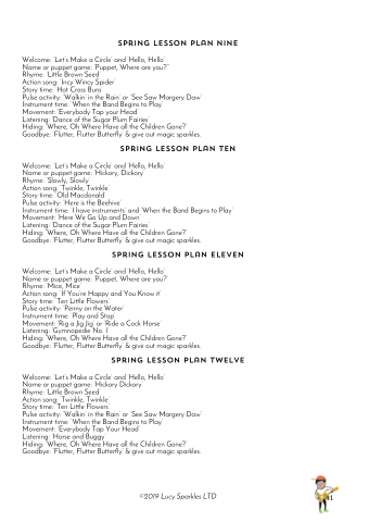 Welcome: ‘Let’s Make a Circle’ and ‘Hello, Hello’ Name or puppet game: ‘Hickory Dickory’ Rhyme: ‘Little Brown Seed’