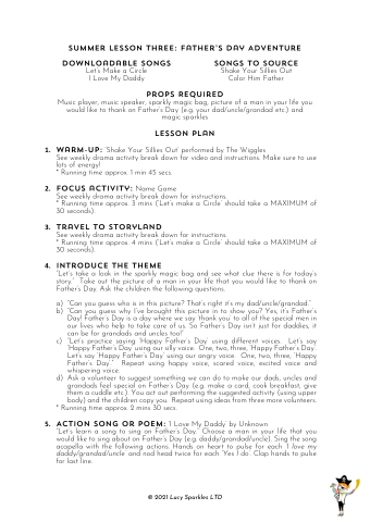 b) “Can you guess why I’ve brought this picture in to show you? Yes, it’s Father’s Day! Father’s Day is a day where we say ‘thank you’ to all of the special men in our lives who help to take care of us. So Father’s Day isn’t just for daddies, it