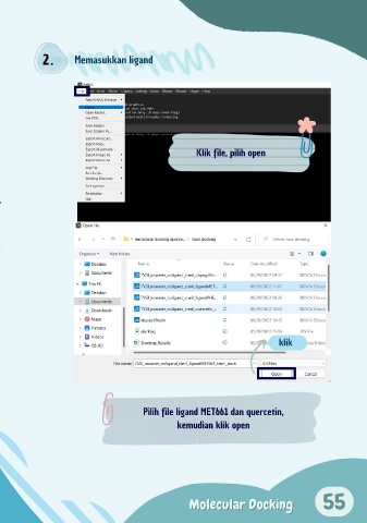 2. Memasukkan ligand Klik file, pilih open klik Pilih file ligand MET661 dan quercetin, kemudian klik open Molecular Docking 55 Molecular Docking