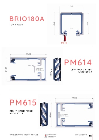 BRIO180A TOP TRACK PM614 LEFT HAND FIXED WIDE STILE SCAN OR CLICK TO VIEW OUR VIRTUAL SHOWROOM PM615 RIGHT HAND FIXED WIDE STILE *NOTE: DRAWINGS ARE NOT TO SCALE 2021 CATALOGUE 119