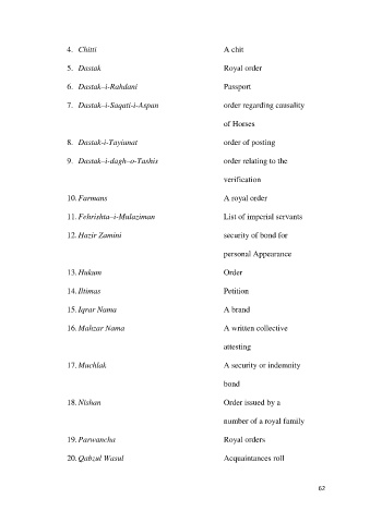 9. Dastak–i-dagh–o-Tashis order relating to the
