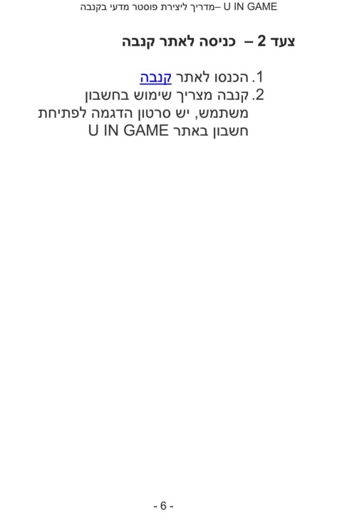 – U IN GAMEמדריך ליצירת פוסטר מדעי בקנבה צעד – 2כניסה לאתר קנבה .1הכנסו לאתר קנבה .2קנבה מצריך שימוש בחשבון משתמש ,יש סרטון הדגמה לפתיחת חשבון באתר U IN GAME -6-