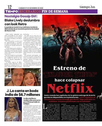 por cantar en la fastuosa y lujosa Lmente, su visión conti- Un portavoz de Netflix señaló a permaneció caído durante unos
