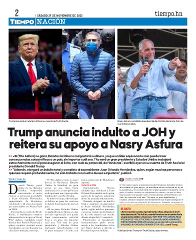 elecciones mañana, domingo. él para asegurar el éxito, con Hernández por su indulto. Publicación de Trump en Truth Social, ayer, viernes.