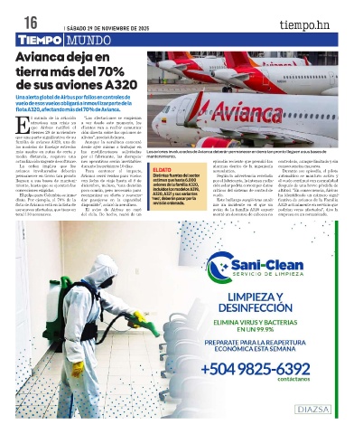 flota de Avianca está en la lista de disponible”, aclaró la aerolínea. revisión ordenada. zar un incidente en el que un A320 actualmente en servicio que