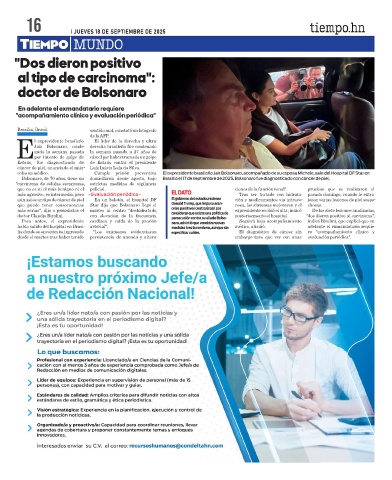doctor Claudio Birolini. con elevación de la frecuencia persecución contra su aliado Bolso- posteriormente el hospital. "dos dieron positivo al carcinoma",